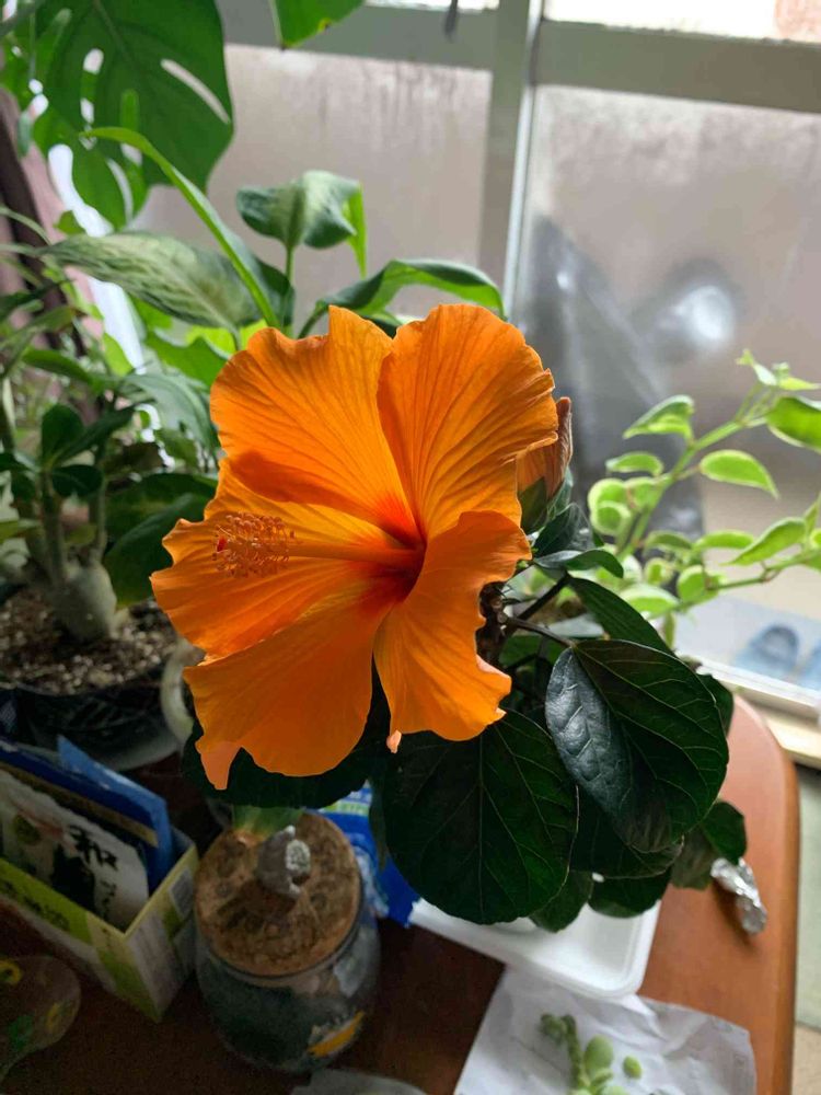 おはようございます😃先程咲きました🌺一週間位前、蕾を持った状態で中に入れました。咲くとは思ったけど、カワイイ😆