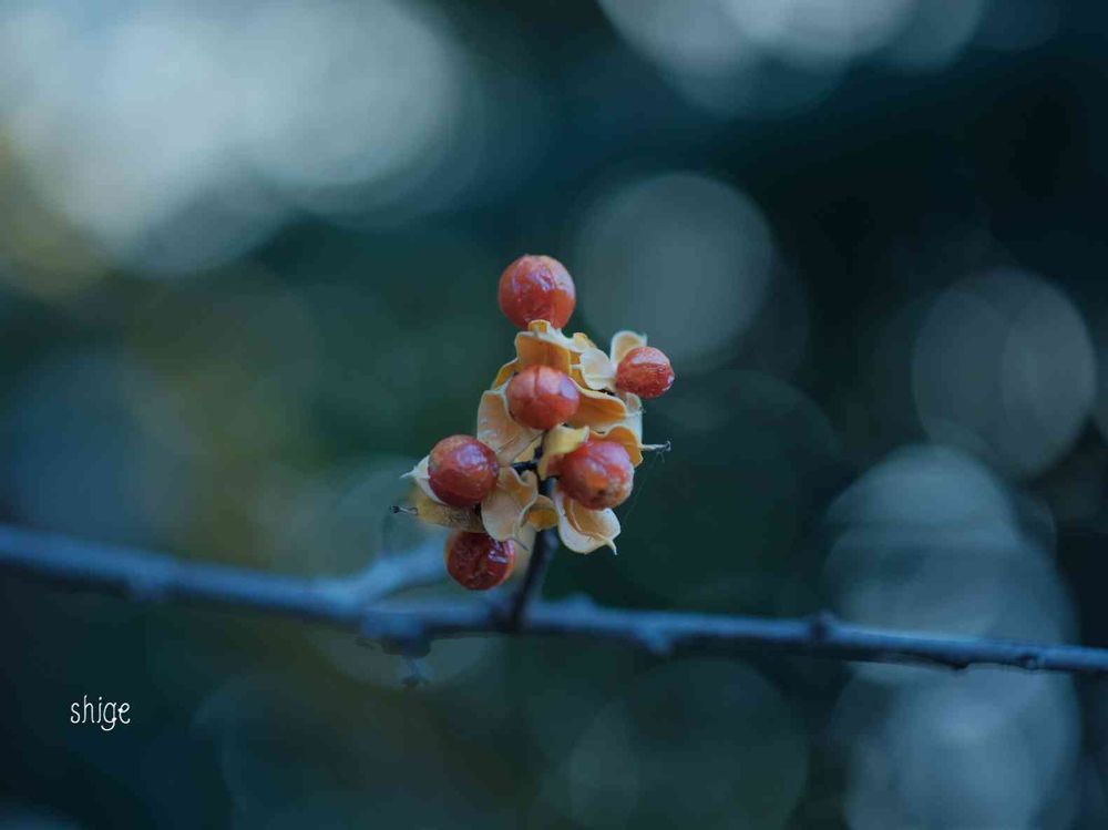 ツルウメモドキさんをファインダー越しに見て撮影していると、