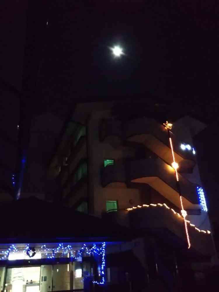 外に出たら、建物の真上にお月様がお疲れ様と言ってくれてました🎵