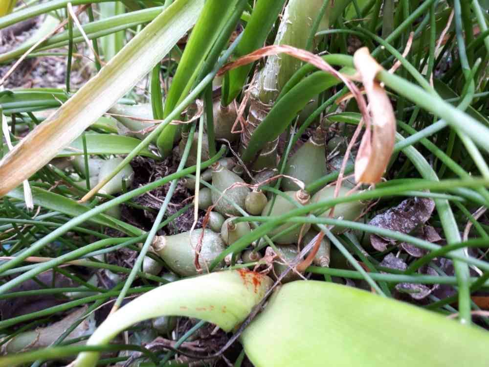 もしかしたら、細い分は春に紫色の花が咲くムスカリかも?