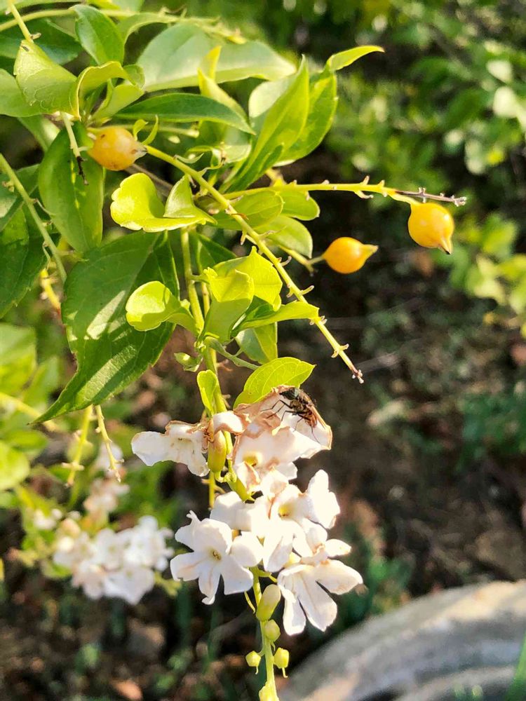 名前分からないけど、白い花もさることながら、黄色い実が可愛い😍