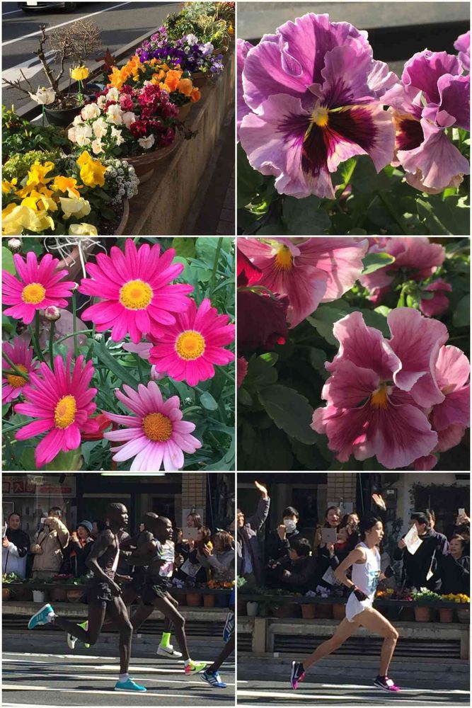 今回はコースが変わって私がいつも買い物で信号待ちするお花の前をランナーさん達が走っています。
