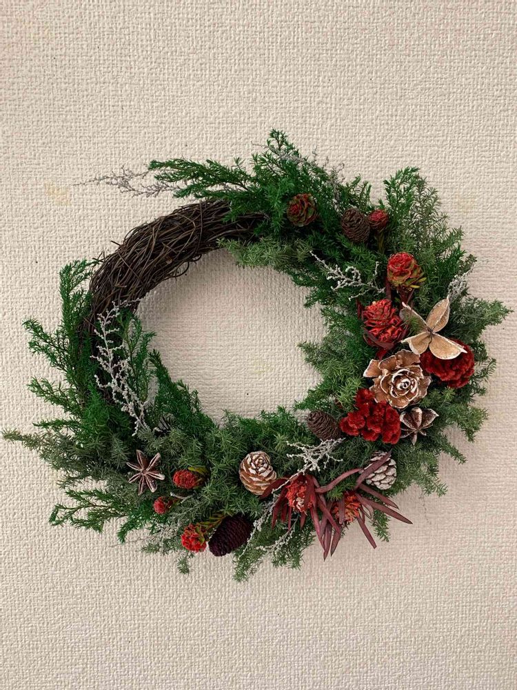 今日ブリザードフラワーのレッスンに行ってクリスマスリースを手作りしてきました😆✨とっても可愛いリースが出来て嬉しいです❤️
