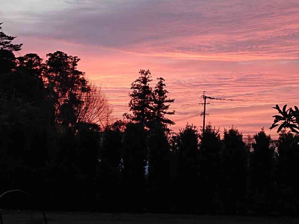 💐夕焼けをバックにお宮の二本杉