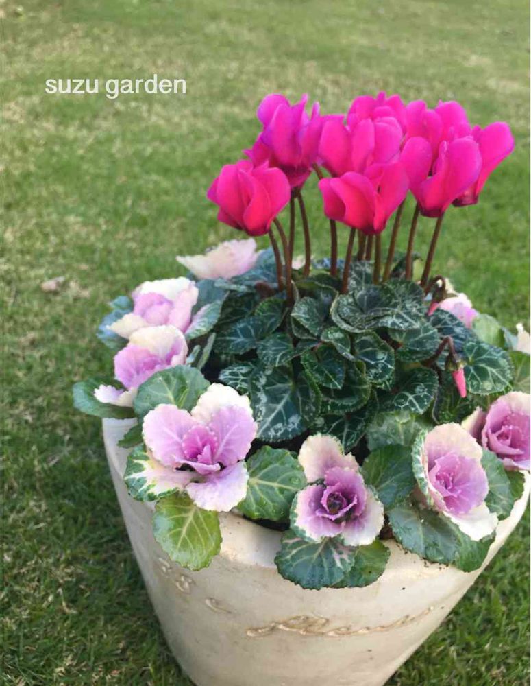 葉牡丹がぐるっと…可愛いです!あまりこういう寄せ植えのデザイン、見たことないです😍