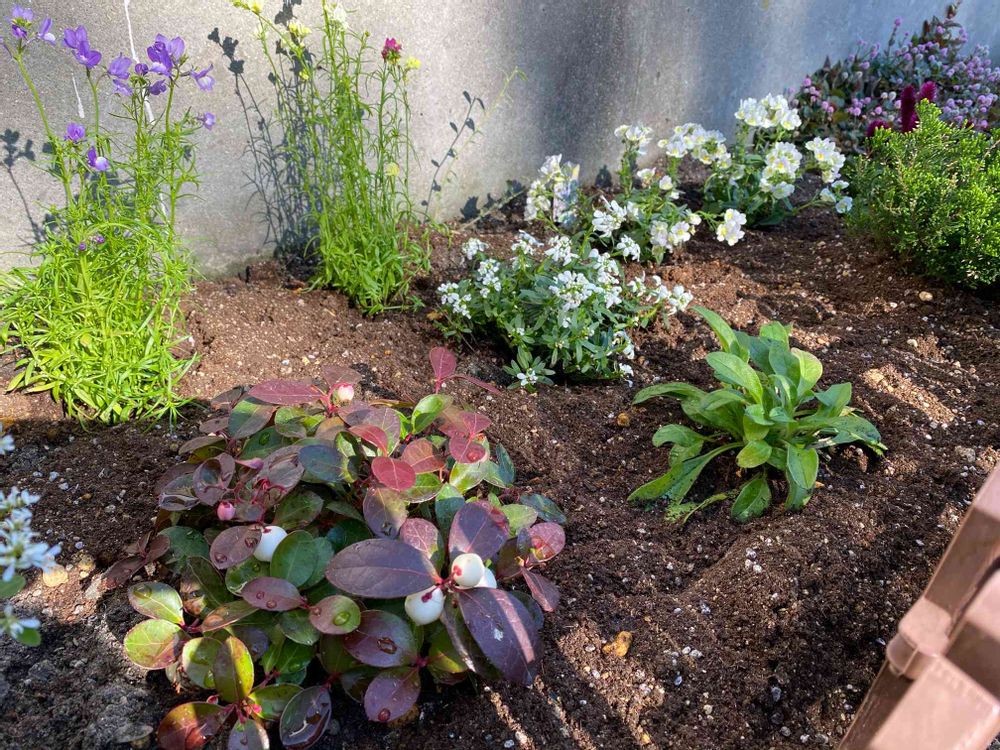 アメリカンブルーと赤葉センニチコウを鉢上げしたので空いたスペースに色々植えました。名前教えてもらったおかげで職場で名前を聞かれても堂々と答えられます。