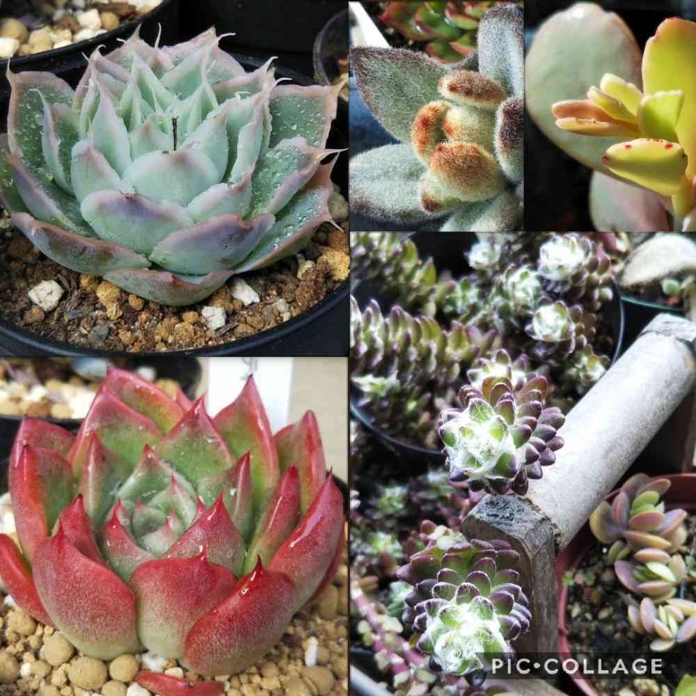 多肉ラボⓒお題の冬越しが難しい子は、うちでは右半分のこの子達(他にも多数いるけど)