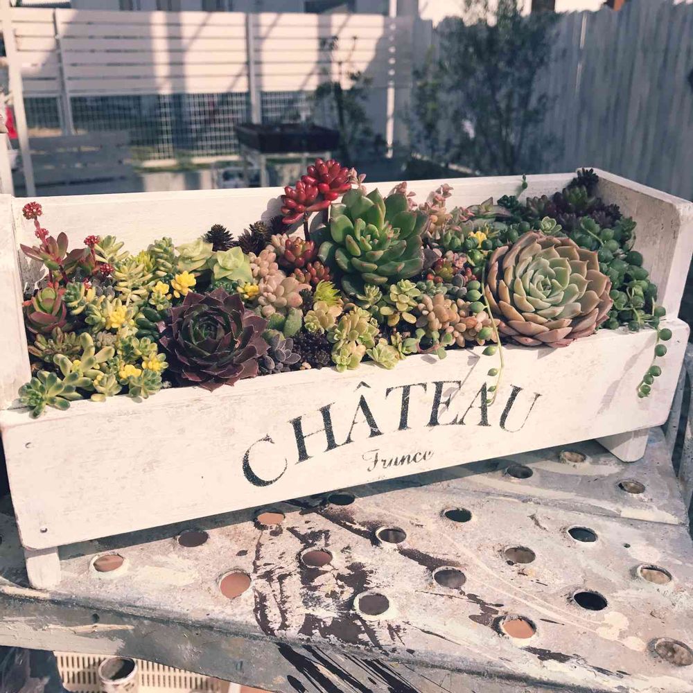 昨日、みーちゃんのブースでお買い上げした木箱に、寄せ植えを頼まれたので早速植え込みしました〜☆☆☆