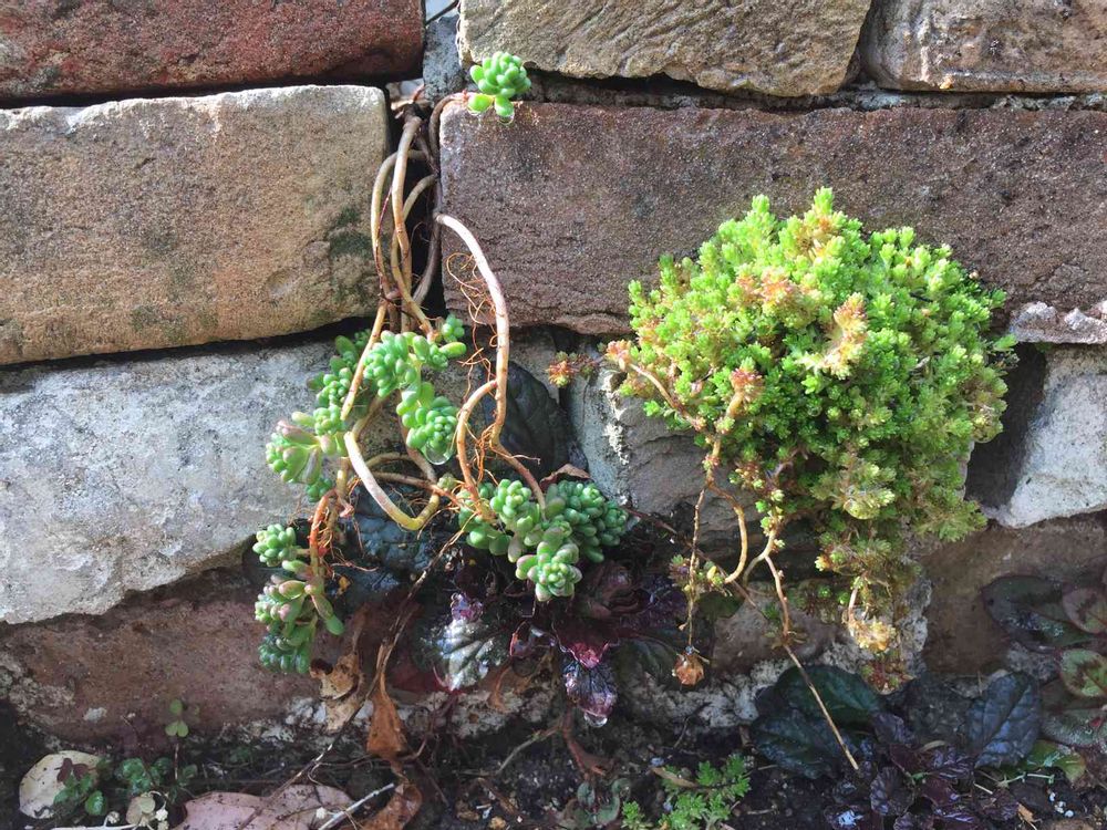煉瓦の隙間からモリモリ出てくるセダム‼️