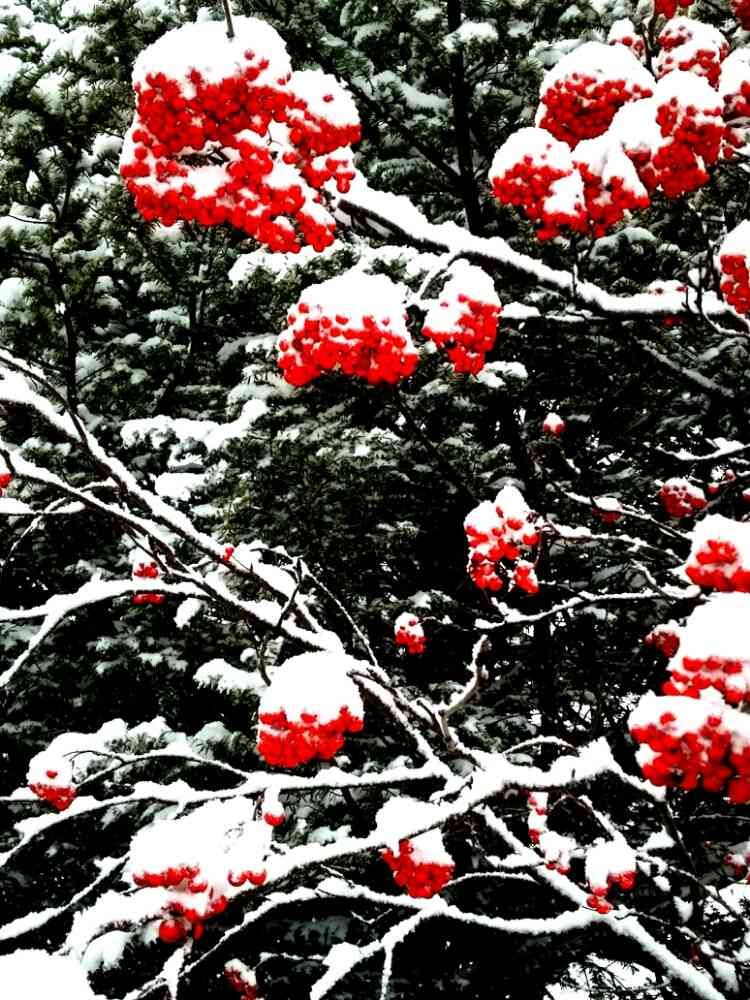 ナナカマドのの赤い実は、雪綿帽子をカブリました❤