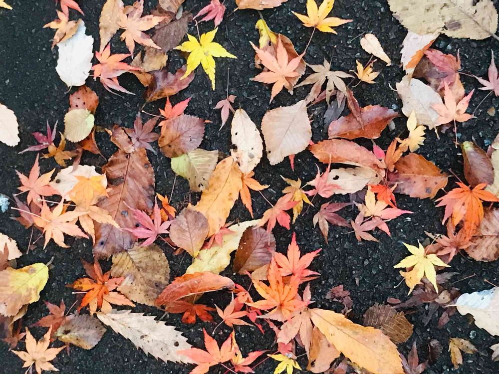 コナラやカエデなど様々な落ち葉🍂 何も言わず、人に踏まれ朽ちていく。そして土に還り、カタチを変えて木に戻る。輪廻転生。