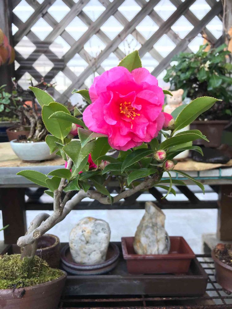 この寒椿は植木の枝を挿木にして仕立てたので毎年良く咲いてくれます。