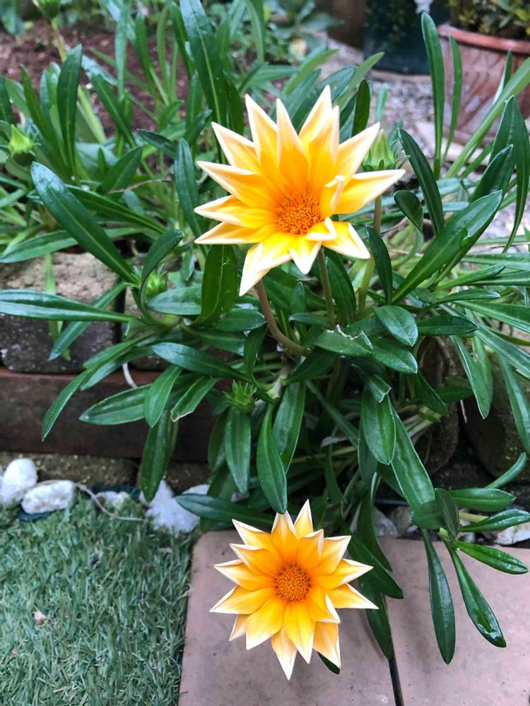 我が家のガザニアはオリーブの木の下なのでひっそりしてます💦