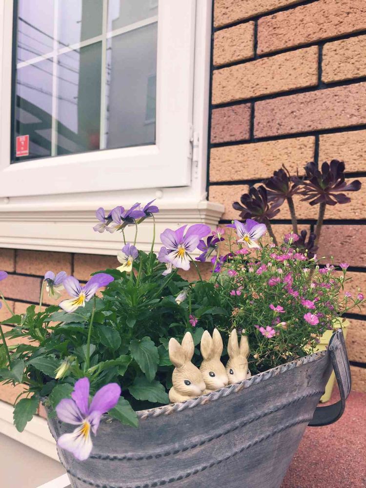 又々素敵な寄せ植えー!ビオラもおしゃれですねー💜💜このビオラ、なんか変わった形だねー!細長い感じ?ラビットちゃんが沢山いる見たいですー💗💗