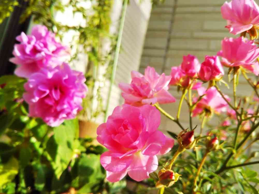 外で対策なしで大丈夫なミニバラ・ほほえみと、夜は室内のばら咲きインパチェンス。