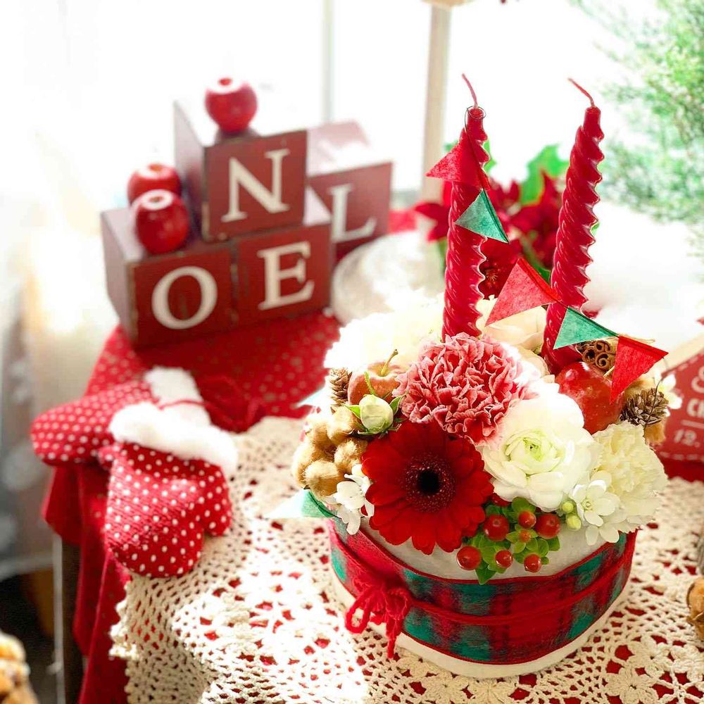 12月レッスン作品🌸キャンドルアレンジ。ケーキに見えるかな?