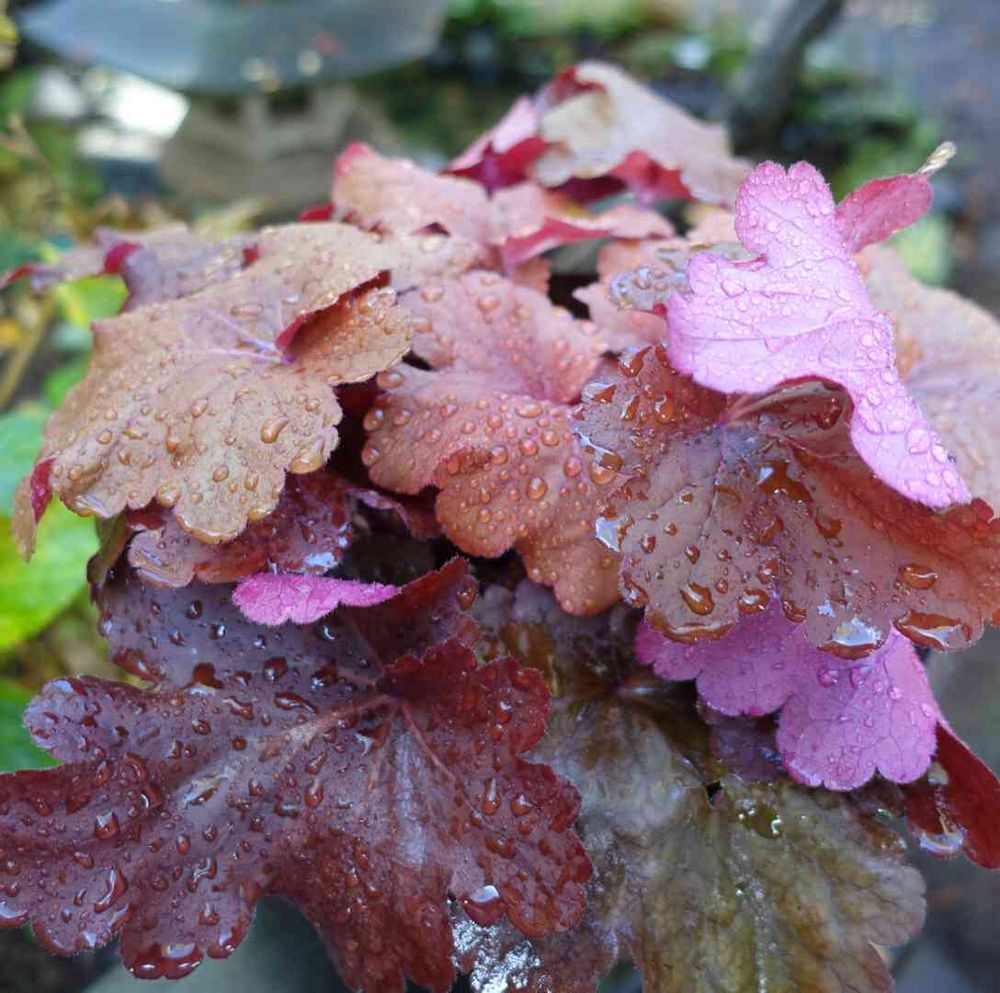 ヒューケラさん、紅葉しているような葉に緑の葉と、種類がたくさんあるのですね。