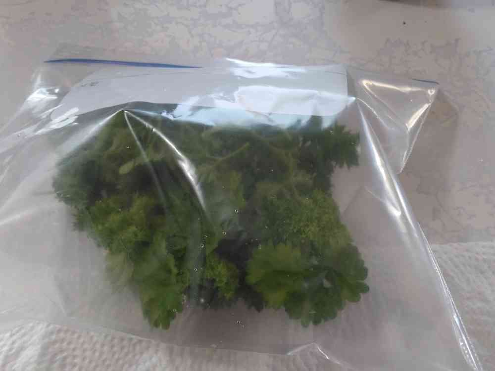 収穫したパセリはよく洗って水分を取ります。