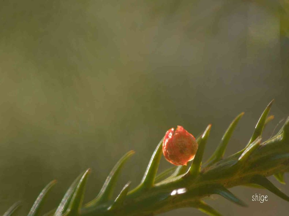 針葉樹の葉の上にちょこんと乗っているので、鳥さんが落とした種かと思ってよく見ると、針葉樹の実のように見えてきました。