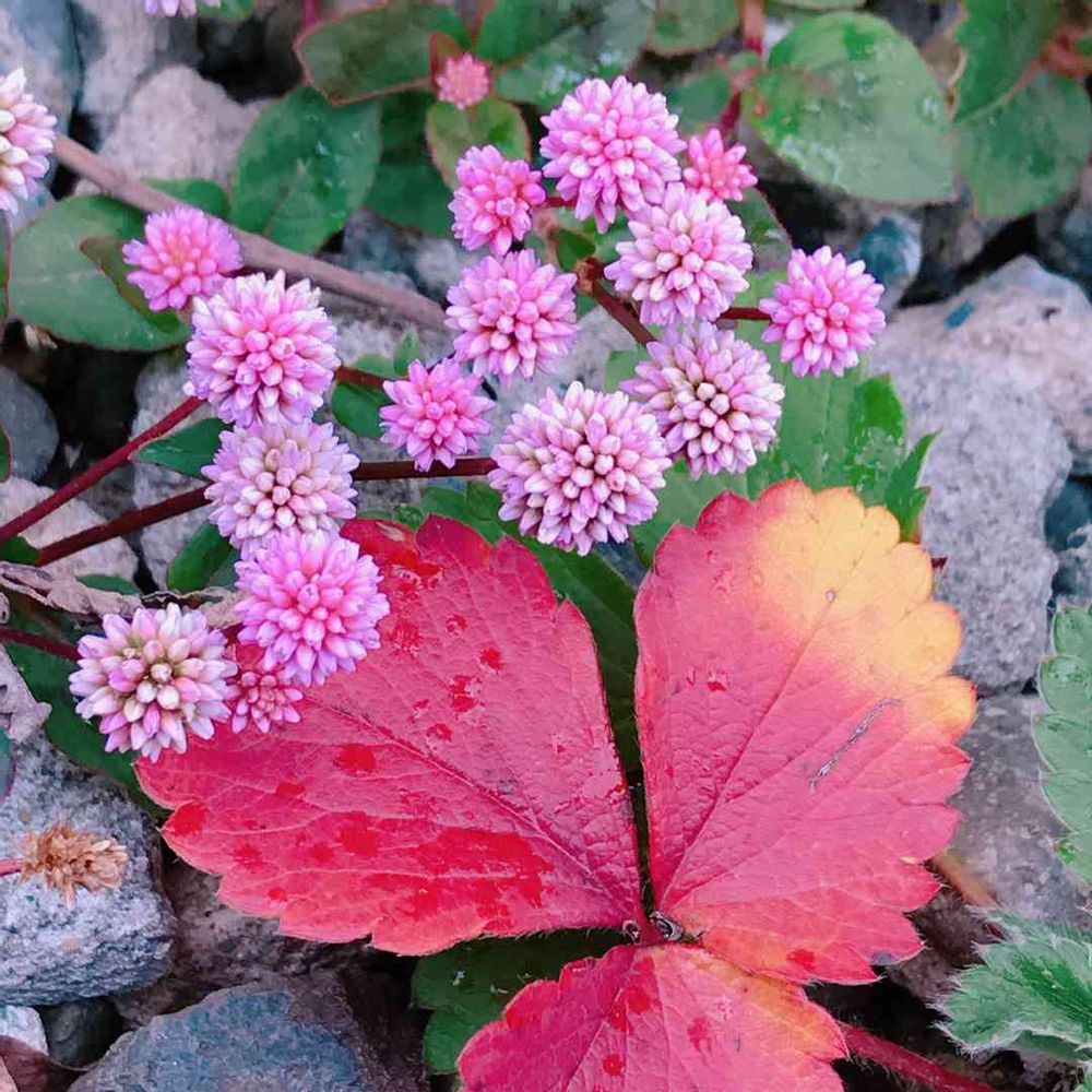 ポリゴナムと紅葉したイチゴの葉っぱ🍁