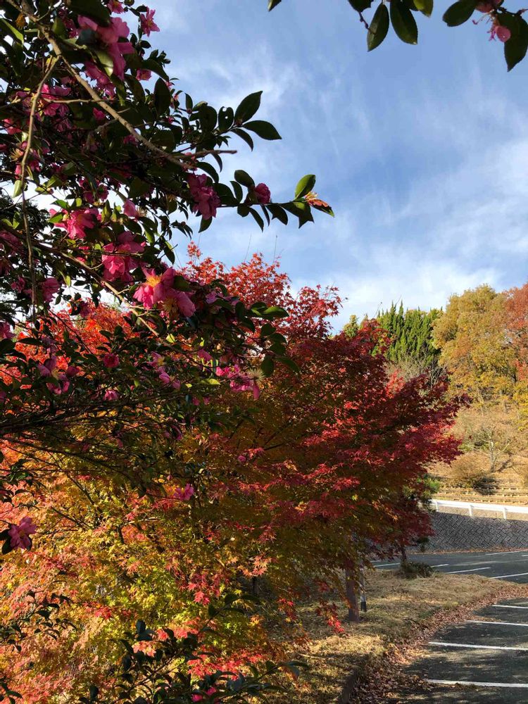 サザンカとモミジのコラボ🌸