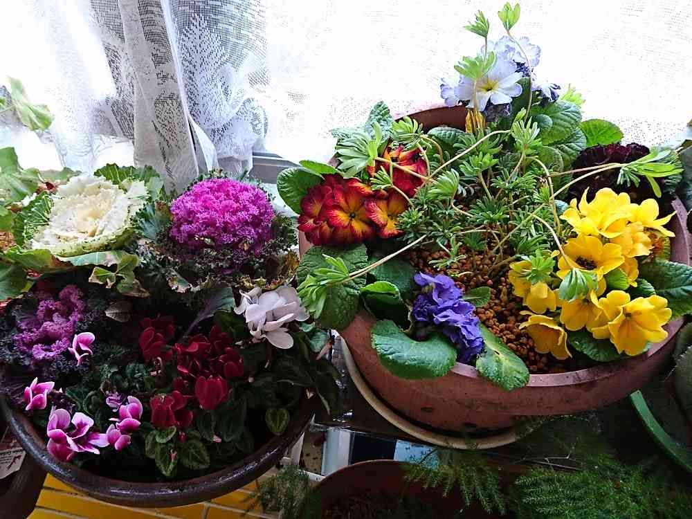 以前作った葉牡丹とガーデンシクラメン、元気です🎵