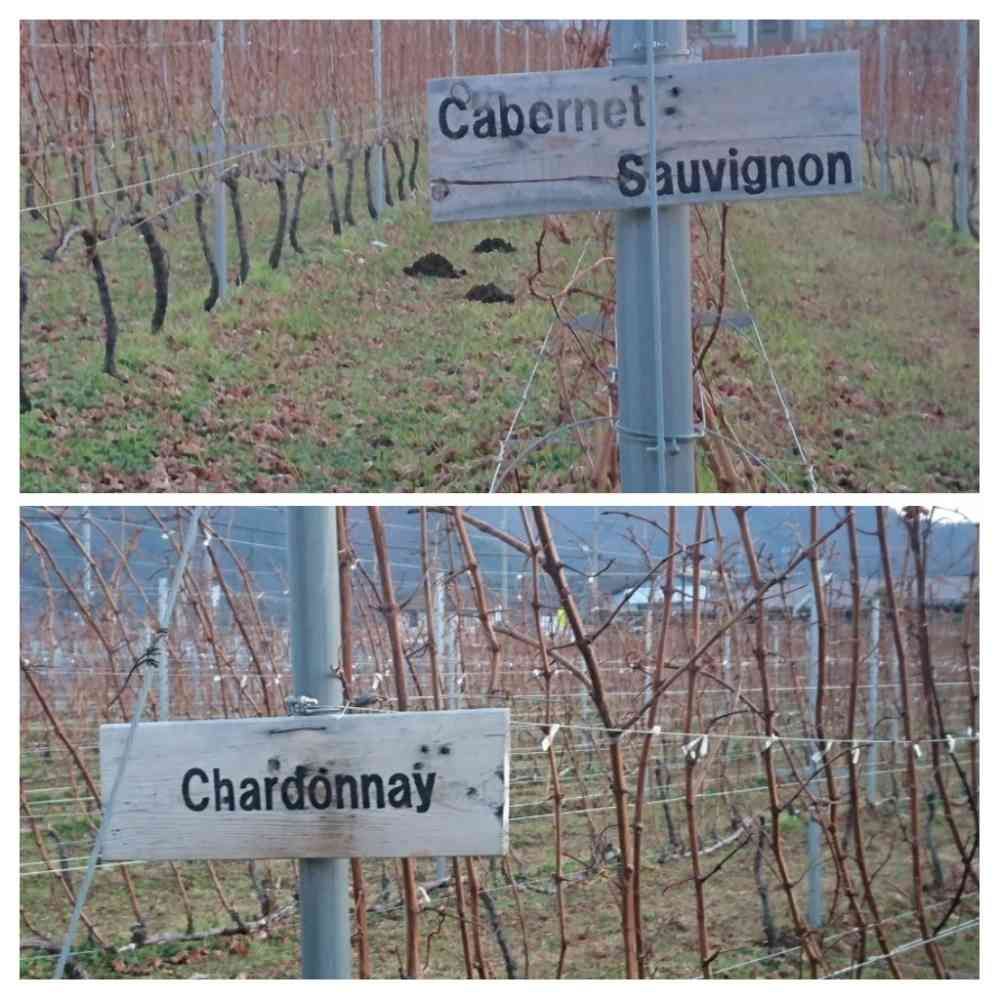この時 わんことお散歩しながら いつもと反対の国道側から廻って行ったら その畑の所に出ましてヾ(゜0゜*)ノwine用葡萄の品種も判明♪