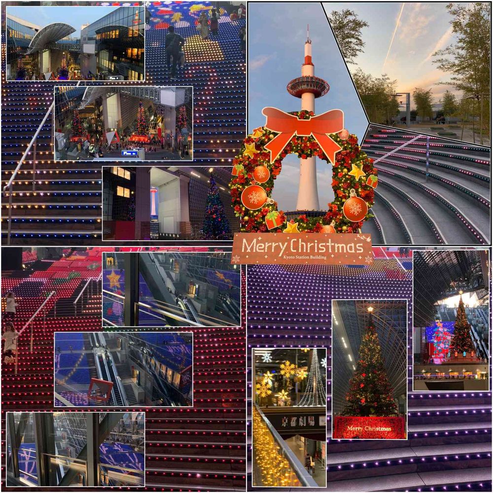 左下は、階段のイルミネーションが建物の壁に映ってダブルの映像!