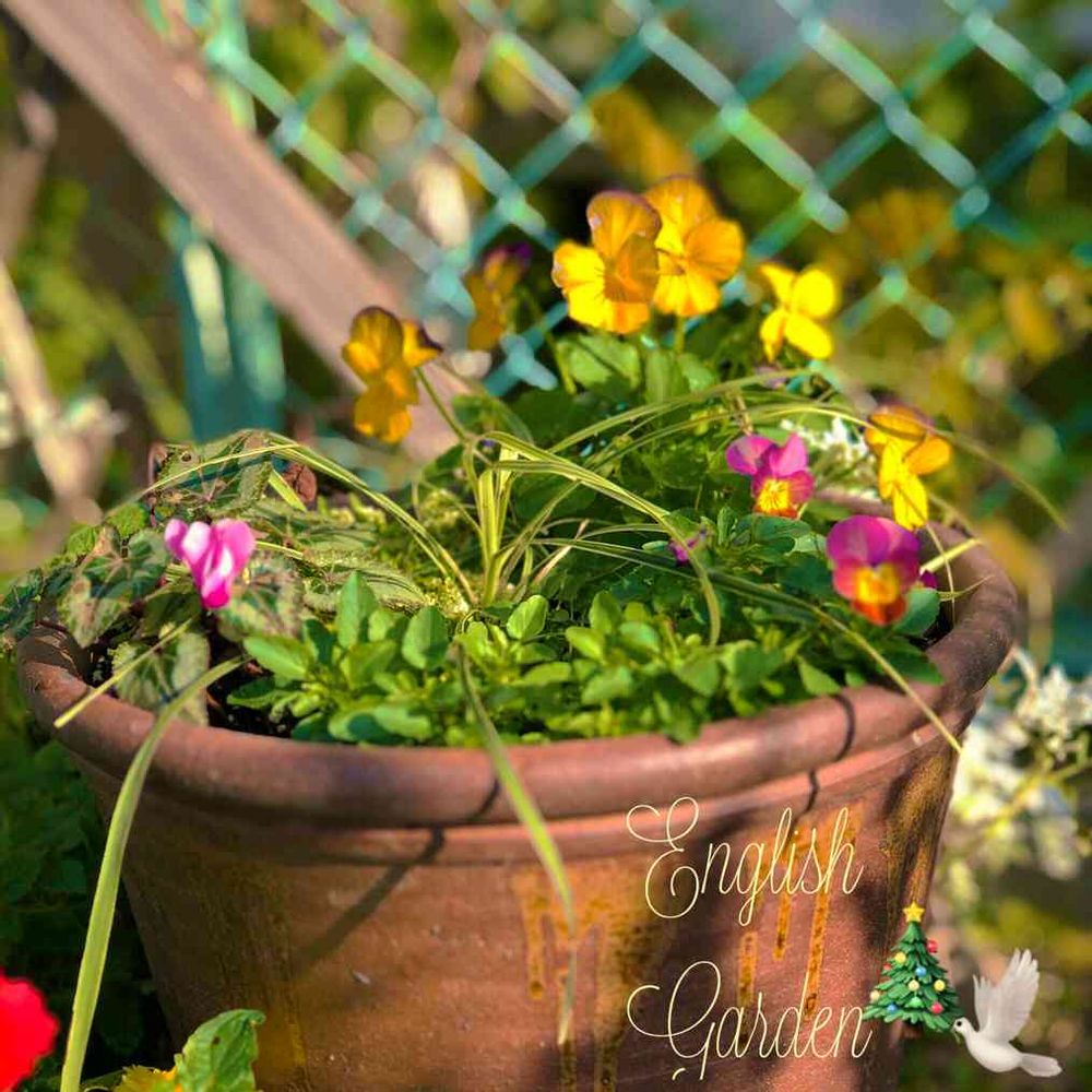 イングリッシュガーデンさんの寄せ植えは、とてもビオラが生き生きしてて、素晴らしい。