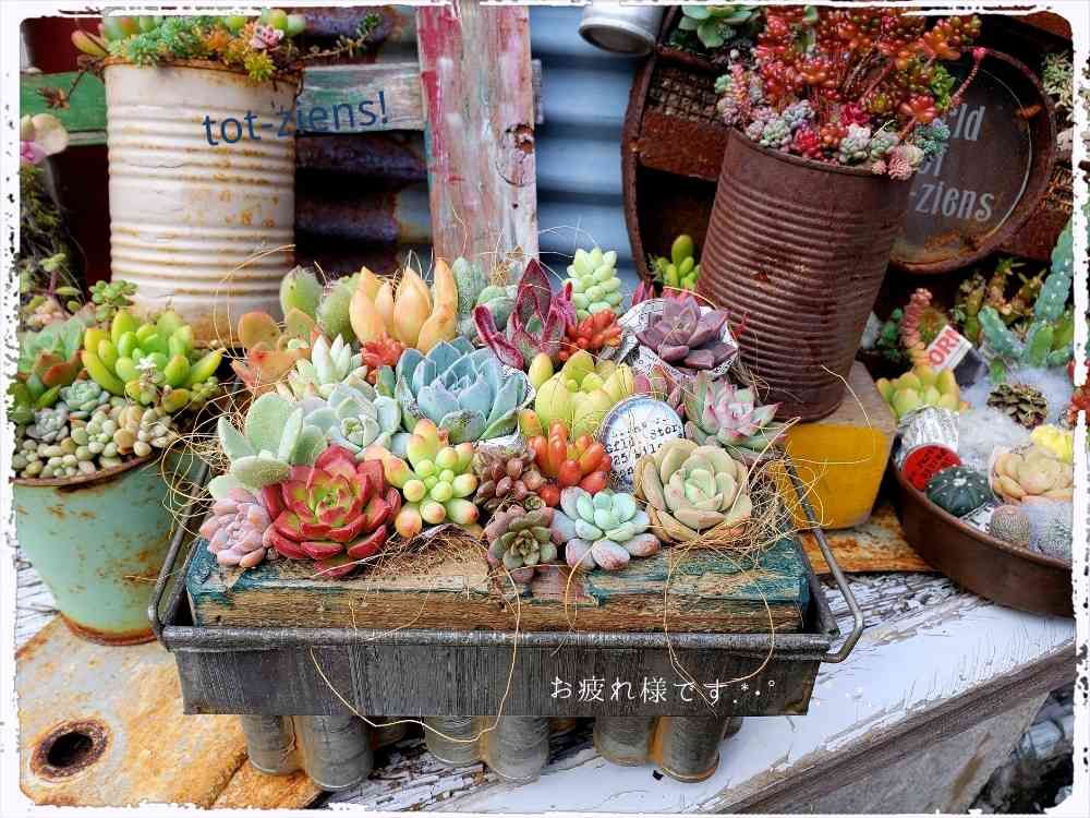 真ん中のブリキにレイアウトしたのが〝 紅葉多肉の抜き苗セット〟の1例です💨
