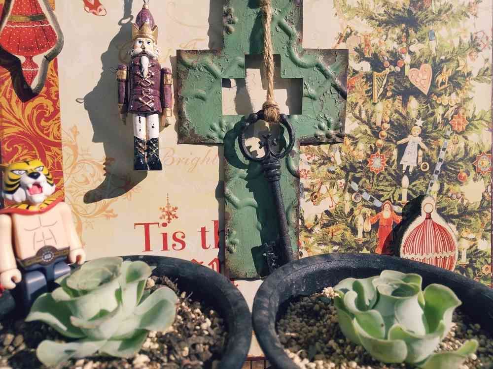 バックがなかなかシブいXmasの飾り、と思ったら、、、タイガーマスクがいた!!!