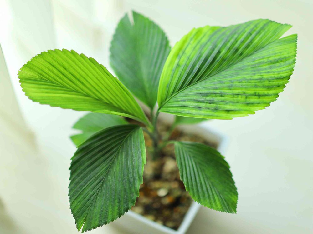 ポテトチップスみたいな葉の小さなヤシです。