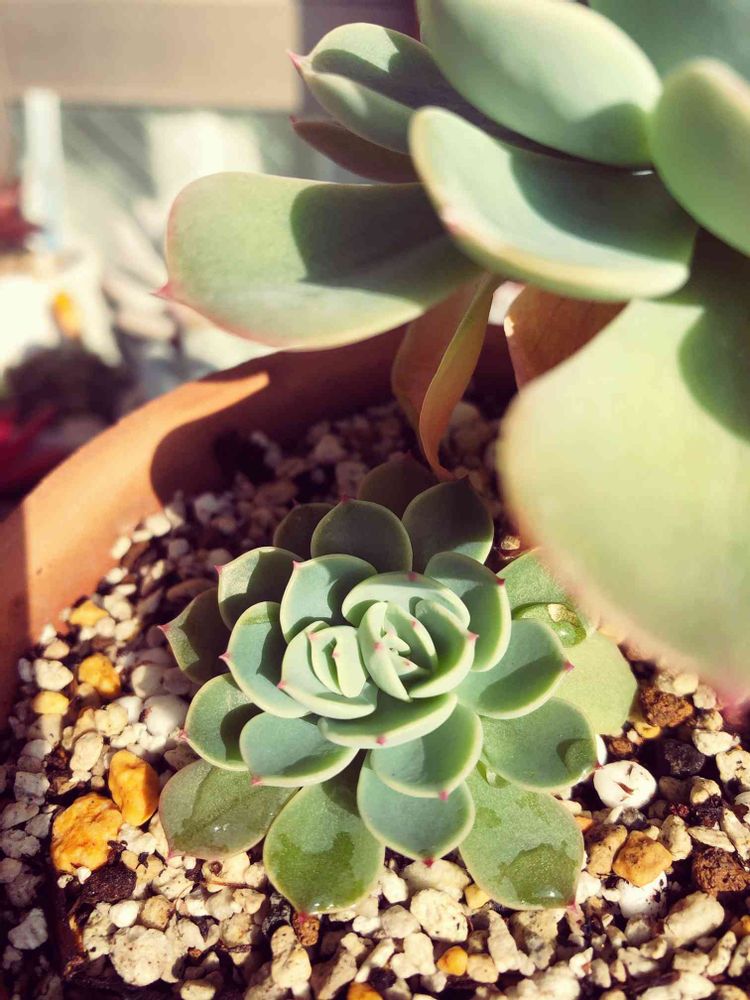 こんにちは😃今日は天気良さそうなので 水やりしたらなんだか小さい七福神…成長点が2つあるような…😅七福神とはいろいろ起こるものなのですかね…今後の成長が楽しみです。