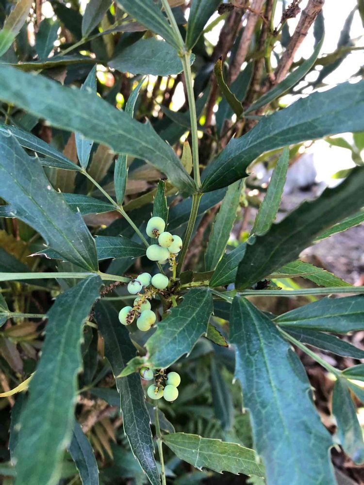 昨日の投稿でヒイラギナンテンの黄色の綺麗な実のpicを見て、我が家の「ホソバヒイラギナンテン」にも黄色の綺麗な実が付いていたらいいのにと期待しましたが ちょっと残念😅