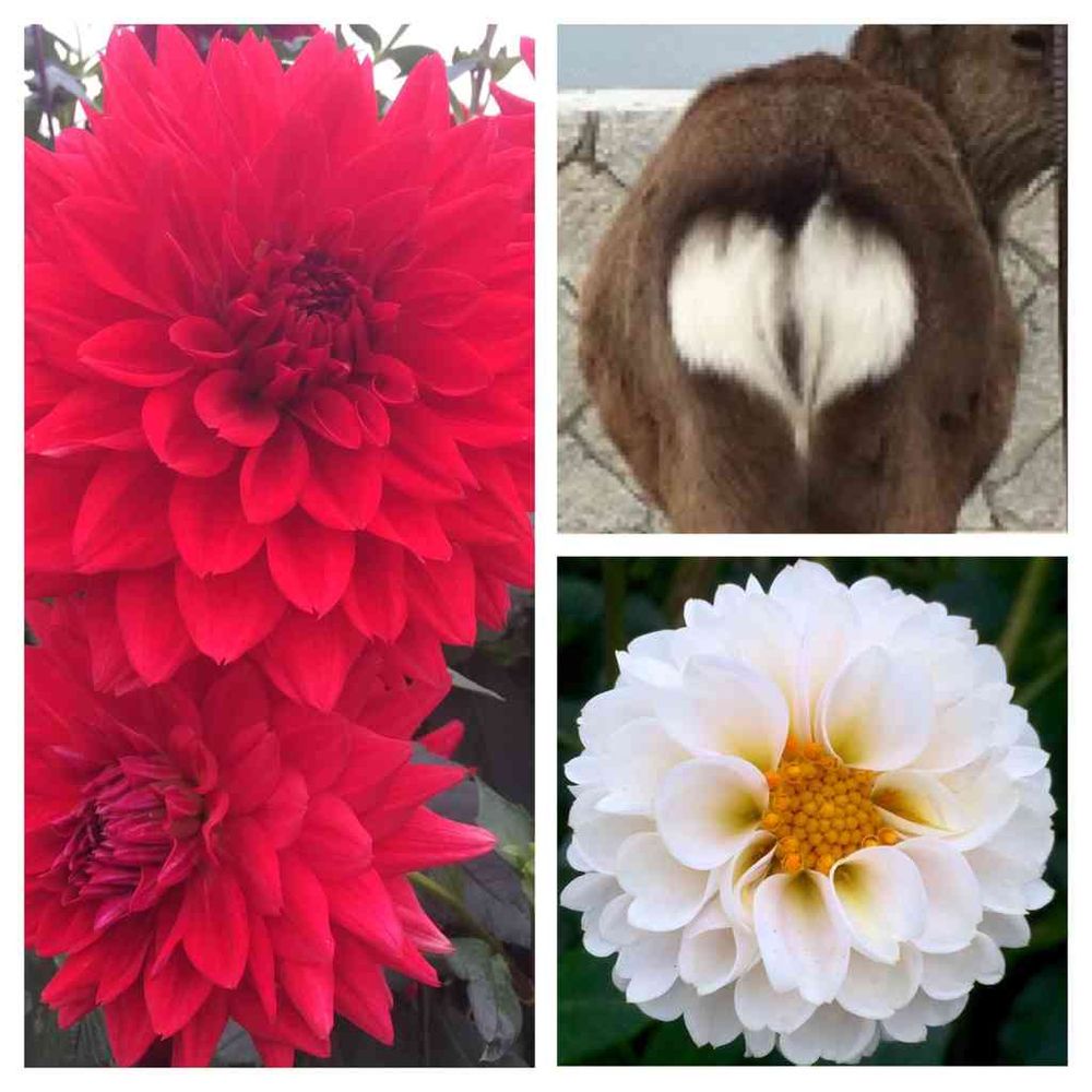 紅白の超大輪ダリアと、ハート模様の鹿のお尻♡でお祝いpicとさせて頂きます😙💕