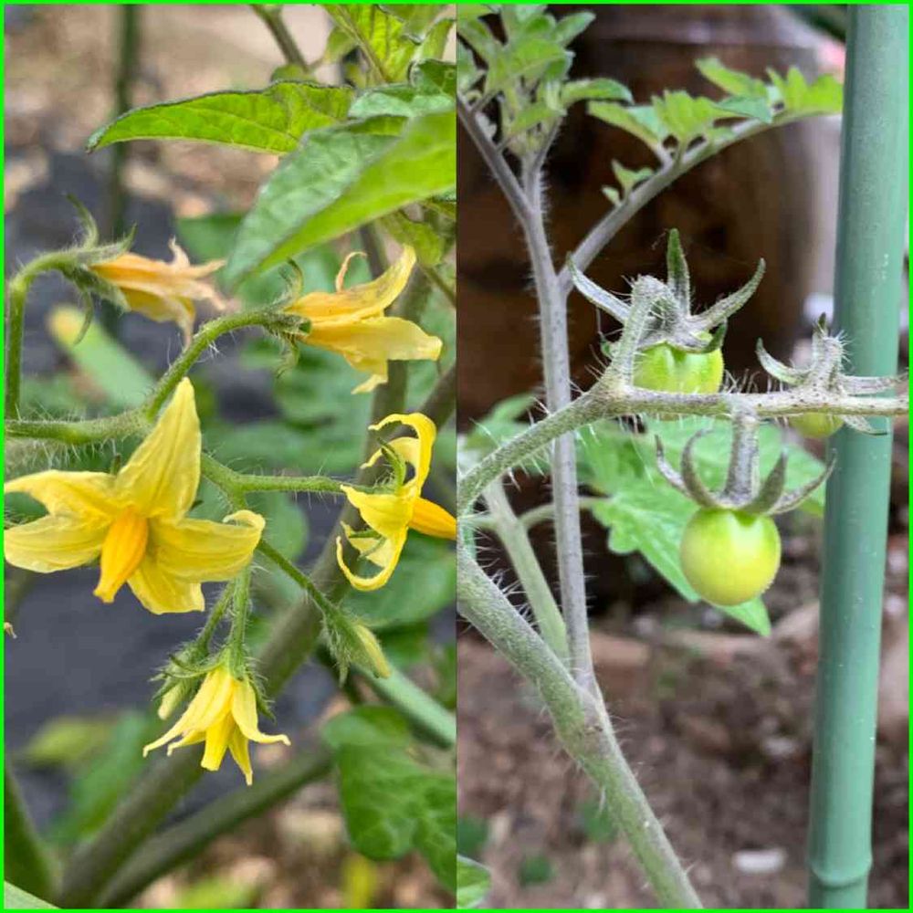 夏に実をつけ落果したミニトマトが芽を出し育った苗に、寒空の下花を咲かせミニトマトがなっていました。食べれるまで育つかな?