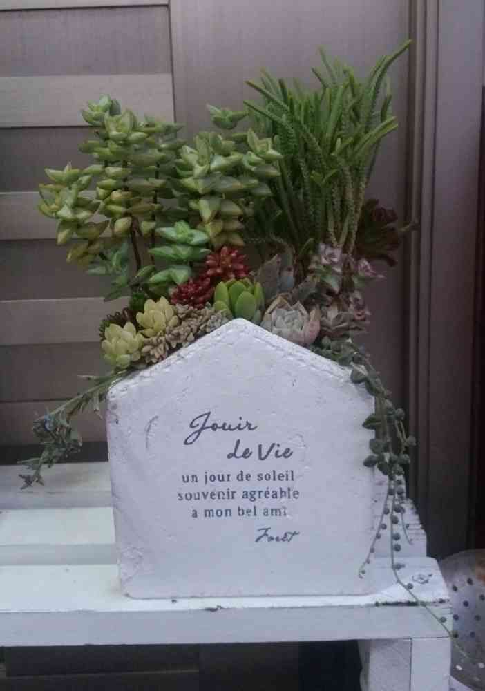 形が可愛くて買ったお家型の鉢、仕立て直しは何度目だろー…、何度やってもなかなか難しい… 笑