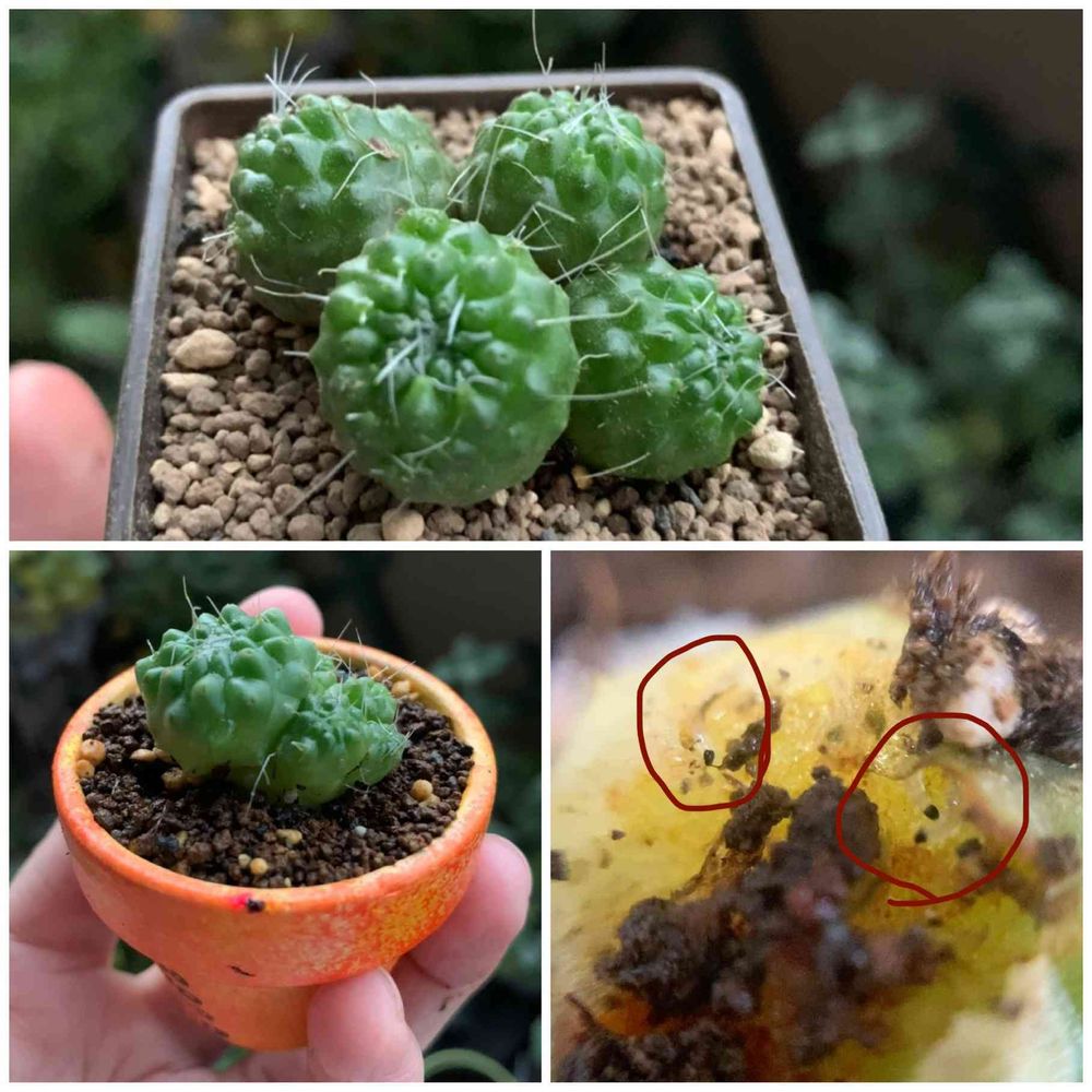 多分コバエの幼虫やと思います。100均で土がびちゃびちゃの状態で売られてて、それがダメやったのかと…土が湿った状態が長く続くとコバエと幼虫が沢山生まれますよね…気持ち悪い👎サボテンとか多肉とか柔らかいと食べちゃうみたいですね。ほかの実生も食べられたことあるんで😡