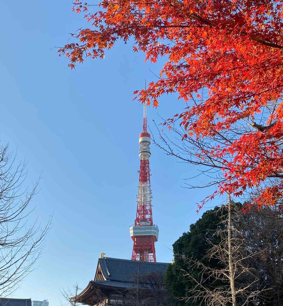 まだ明るい空に、紅葉と東京タワーのコラボがちょっといい感じ(^^)