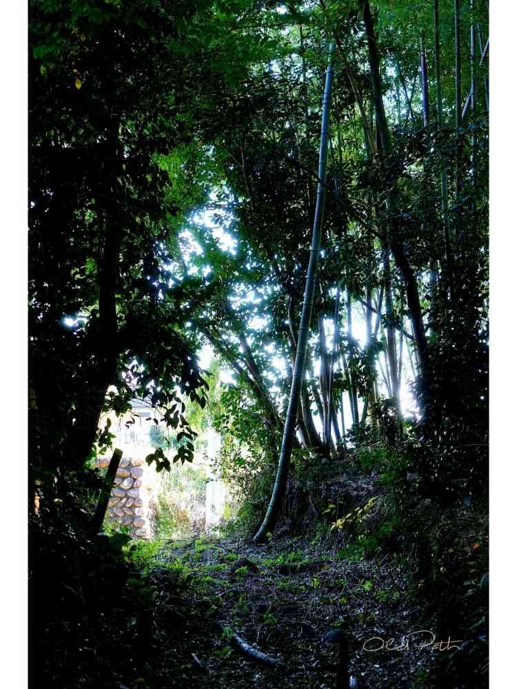 長良川河岸段丘を下る廃道の入口を眺める。竹林から木漏れ日が美しい。🌿🌳🌤️😌