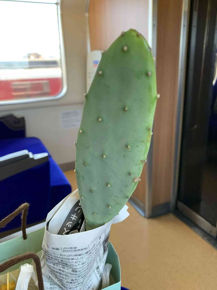 京都の出先で思いがけず出会ったウチワサボテン。電車で三重までお連れします(^^)