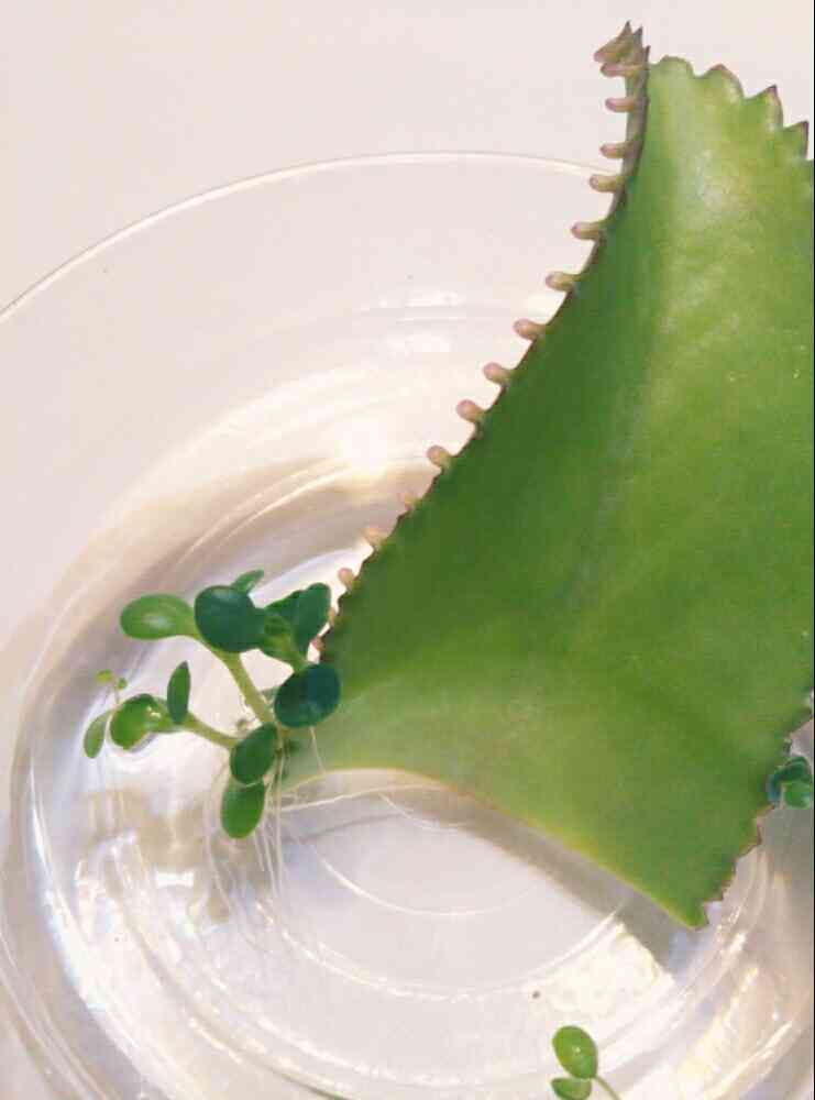 これね、とても繁殖力が強いのですよ。葉の縁に小株がいっぱいついて、パラパラと落下、ドンドン増えますので、あんまり頑張らなくていいかもですよ😀