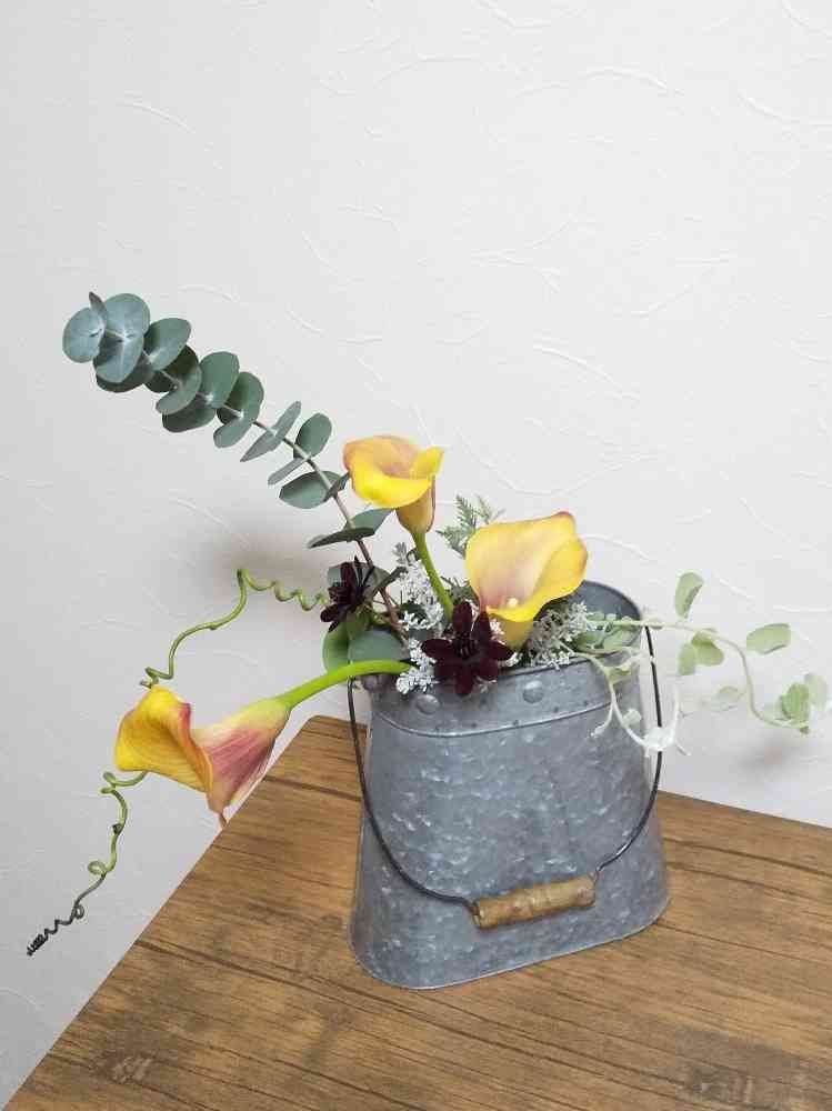 シルバーのバケツとお花があっていておしゃれですね✨\(^^)/
