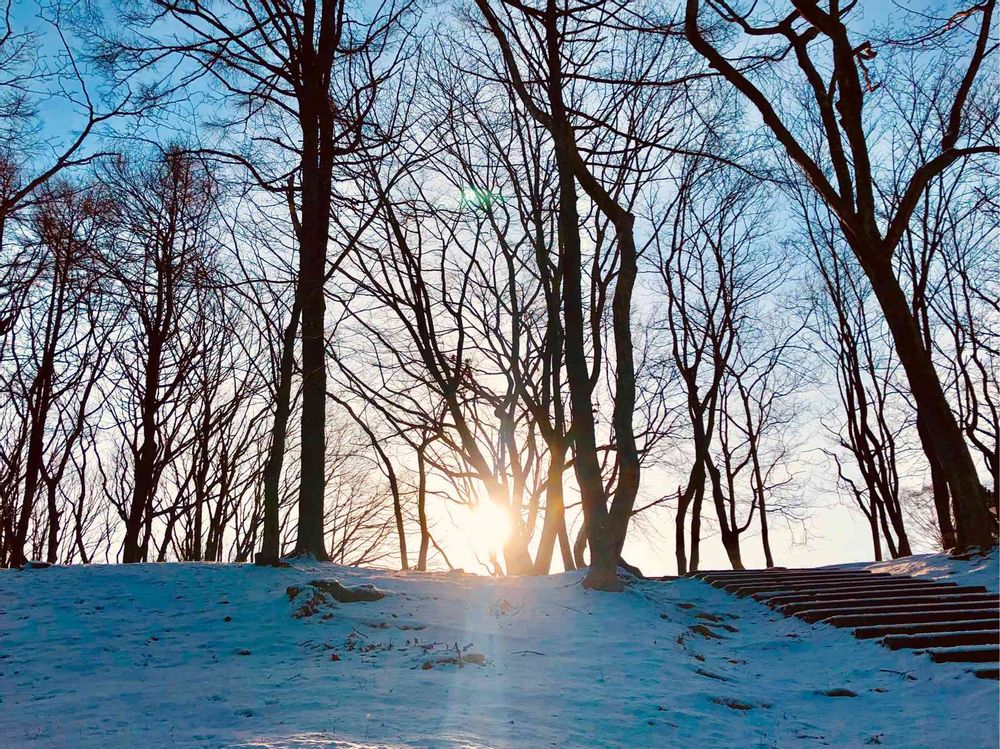 いいですね〜階段の先には公園が…👍想像では…真っ白な雪山と湖…空には白鳥が飛んで…な〜んて思ってました😅空想は楽しいです🎵