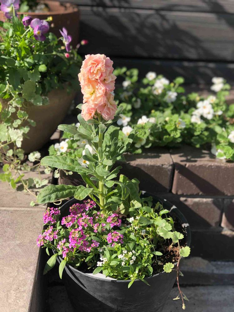 Ricacoさんの玄関,アリッサム,八重咲きストックの投稿画像