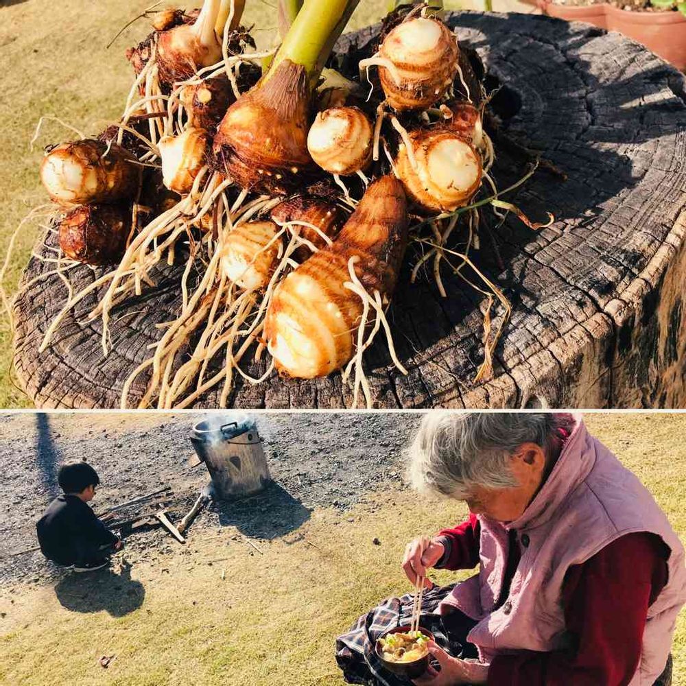 つかの間の冬日和に収穫した土垂で芋煮会🥘