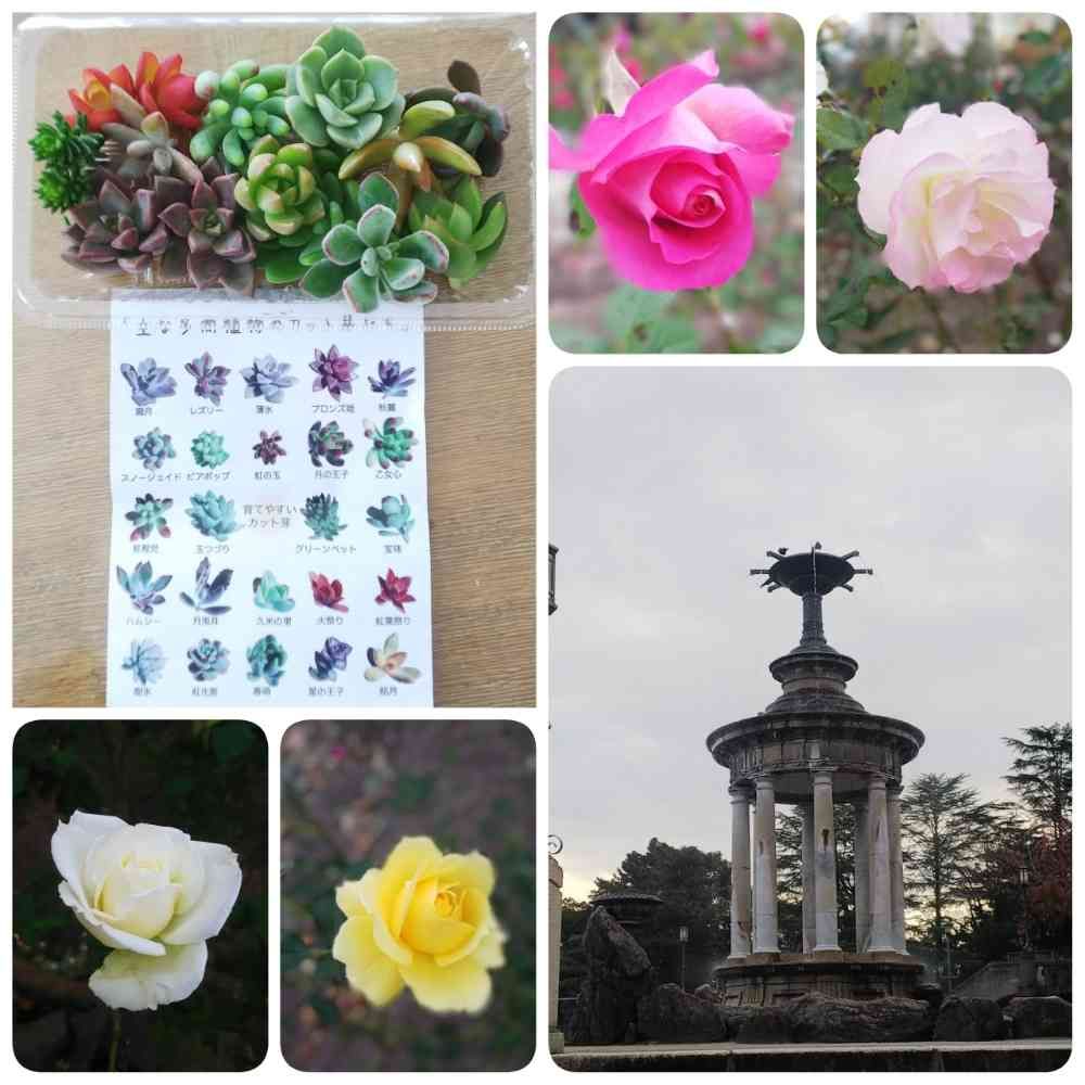土曜日、ナゴヤドームの帰りに隣のイオンで買った多肉カット苗セットと鶴舞公園の🌹たち✨
