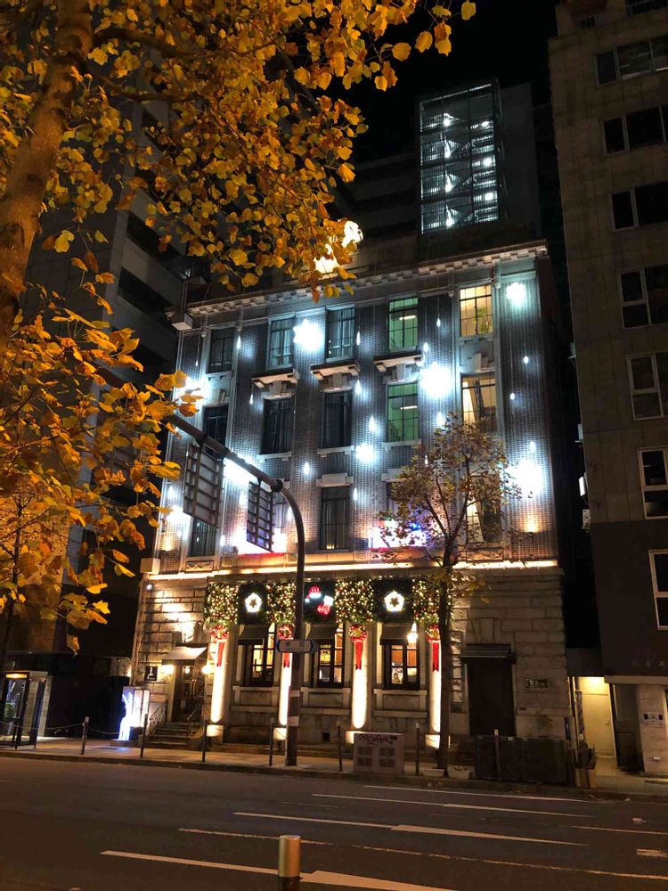 まだ紅葉の残る街路樹とクリスマスイルミネーション🎄