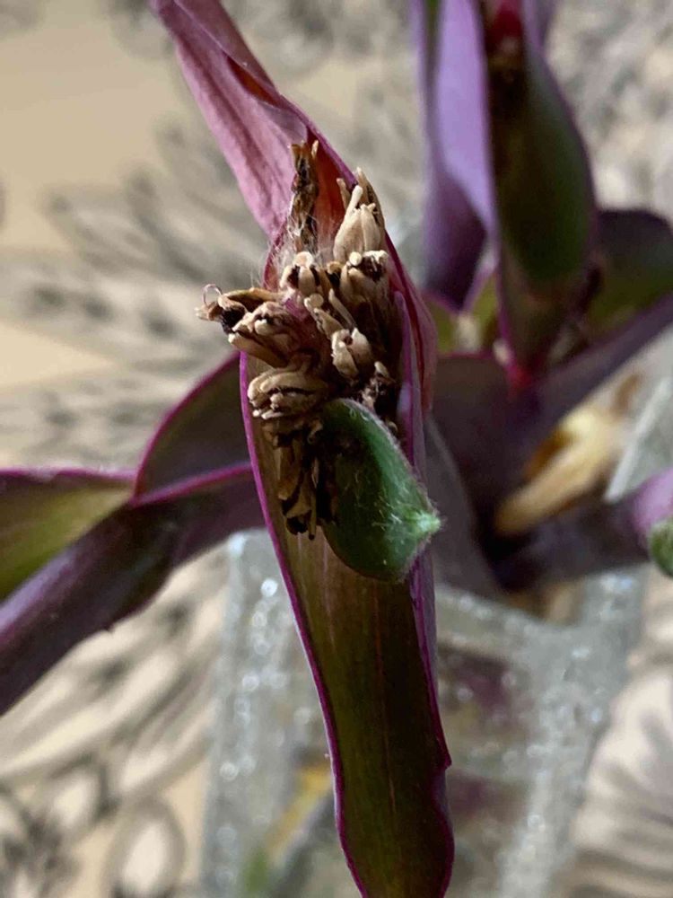 「ムラサキゴテン」の水挿しですが、花が咲き終わった様なので、これ以上の成長は無いだろうと思い、先だけカットして捨てようとおもっていたら、その先に、葉っぱ🌱の様な物が…😅💦