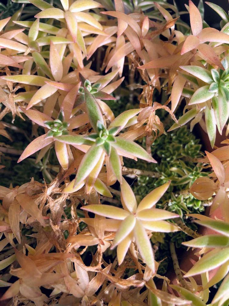 鉢いっぱいに、、、今年の寒さで色が変わってしまいましたが、新芽が!